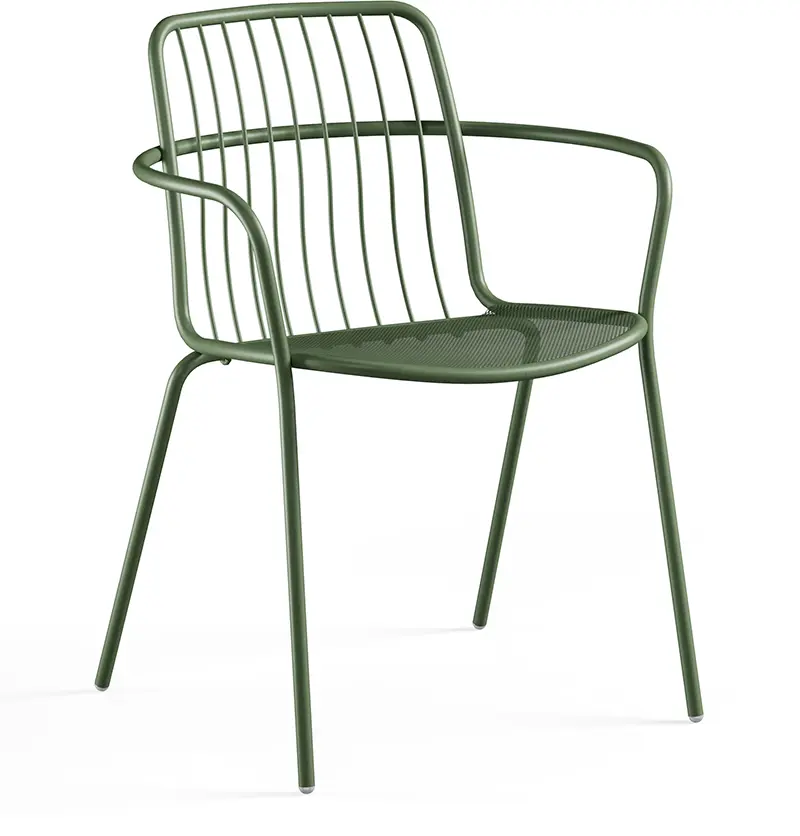 Der Alisea Armlehnstuhl von EMUEMU ist ein italienischer Hersteller von Outdoor‑Möbeln m... More vereint modernes italienisches Design mit hoher Alltagstauglichkeit. Gefertigt aus hochwertigem, verzinktem und pulverbeschichtetem Stahl, bietet er eine klare, elegante Linienführung und gleichzeitig eine beeindruckende Robustheit für den professionellen Einsatz. Die Kombination aus gebogenen Stahlstäben und einer luftigen Streckmetall‑Sitzfläche verleiht dem Stuhl eine moderne, leichte Optik, während die ergonomisch geformte Rückenlehne für angenehmen Sitzkomfort sorgt.