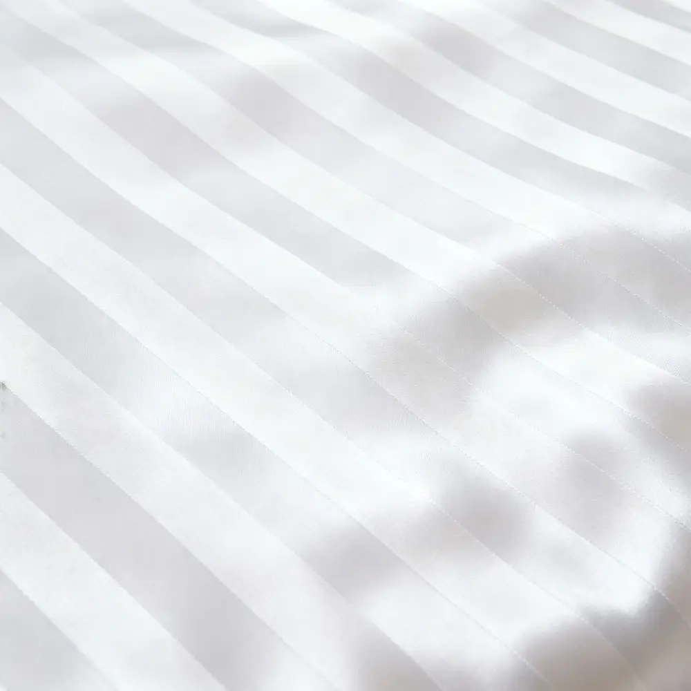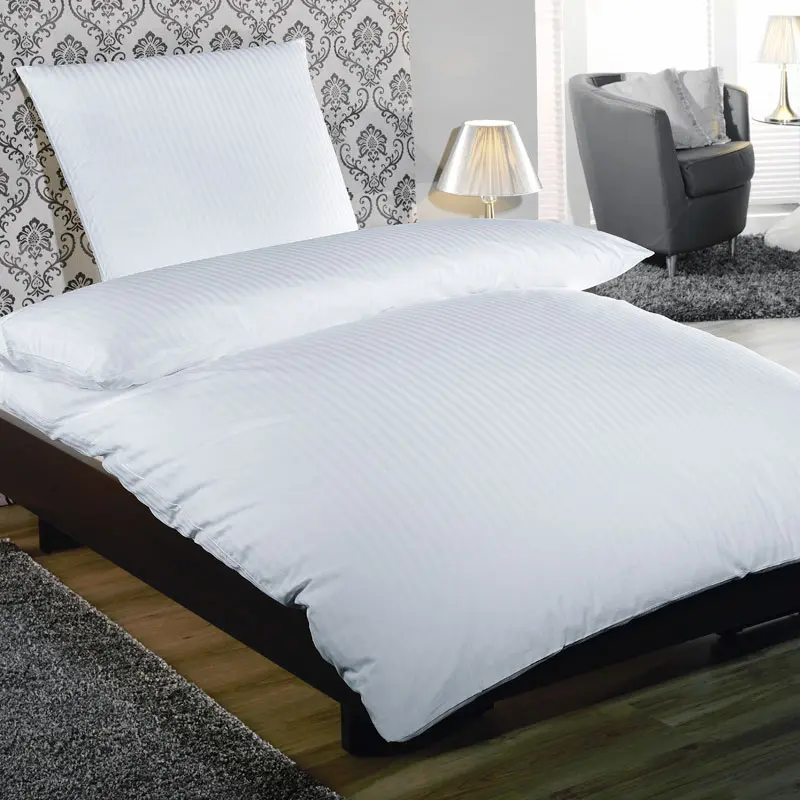 Diese Streifsatin-Bettwäsche verleiht jedem Hotelzimmer zeitlose Eleganz und ein Gefühl von Luxus. Der edle 20 mm Streifen aus 100% Baumwolle sorgt für ein glattes, angenehm frisches Schlaferlebnis und lässt Gäste pure Wohlfühlmomente genießen.