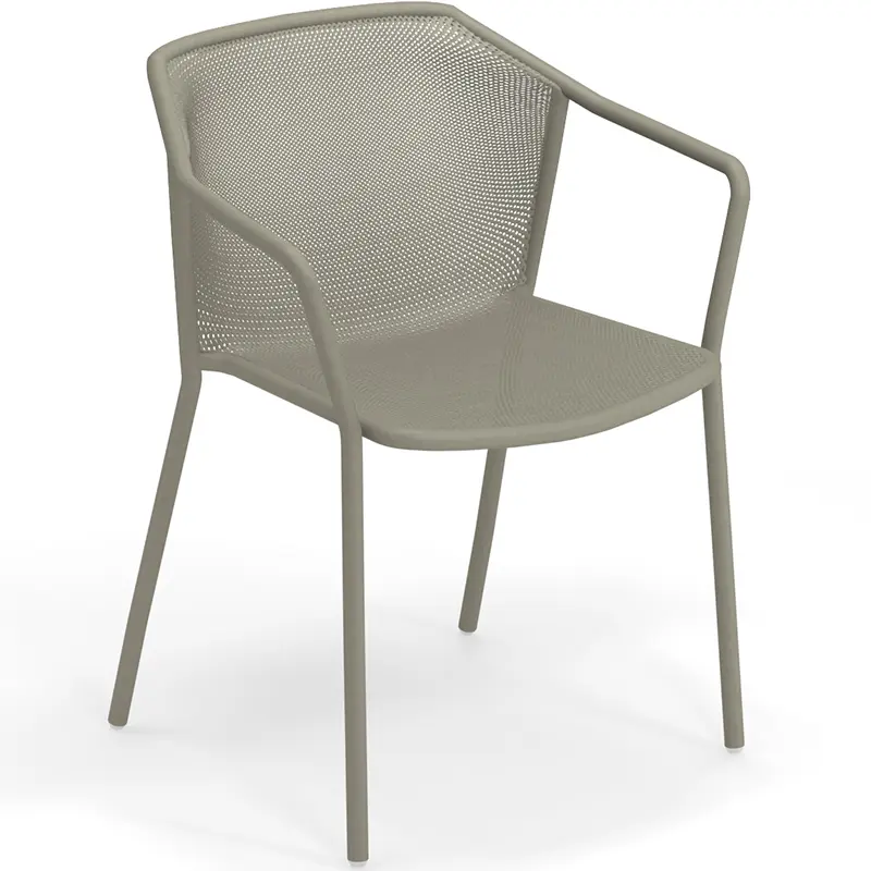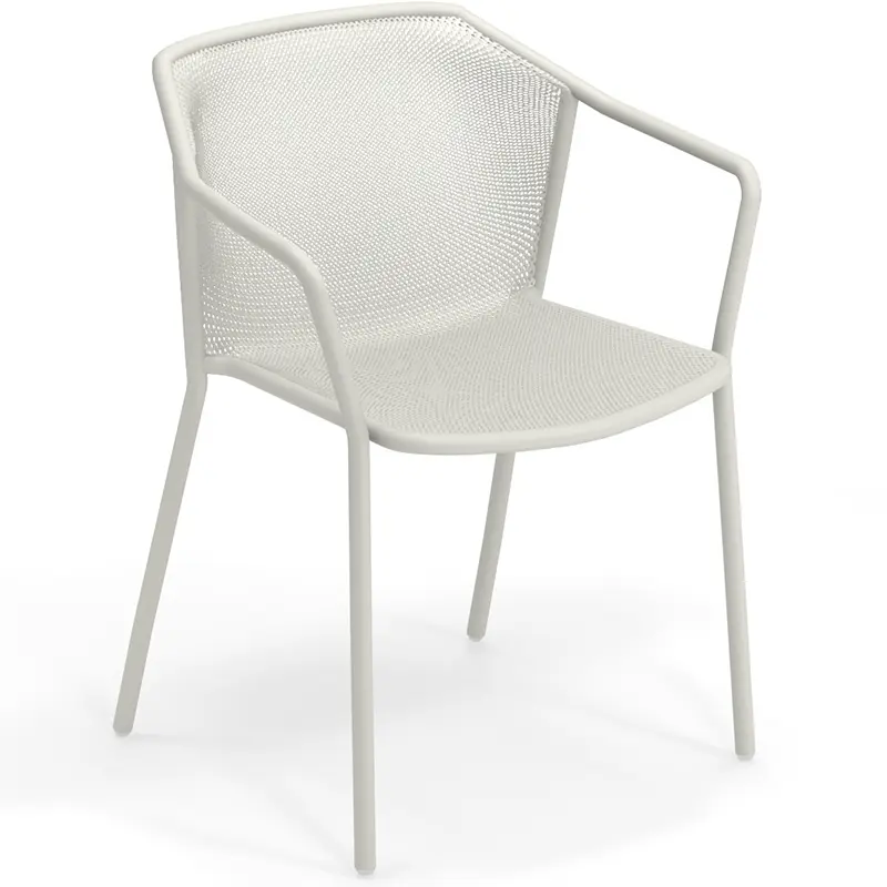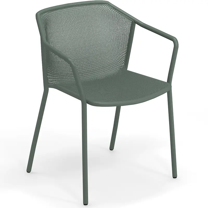 Der Darwin 522 von EMUEMU ist ein italienischer Hersteller von Outdoor‑Möbeln m... More ist ein zeitloser Armlehnstuhl für den Innen- und Außenbereich, entworfen vom italienischen Designerduo Lucidi / Pevere. Die Kollektion verbindet klassische Formensprache mit moderner Geometrie – charakteristisch ist die fein strukturierte Stahlblech-Textur von Sitzfläche und Rückenlehne, die nahtlos in die tragende Rohrstahlstruktur übergeht.