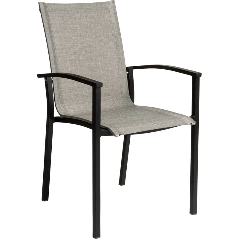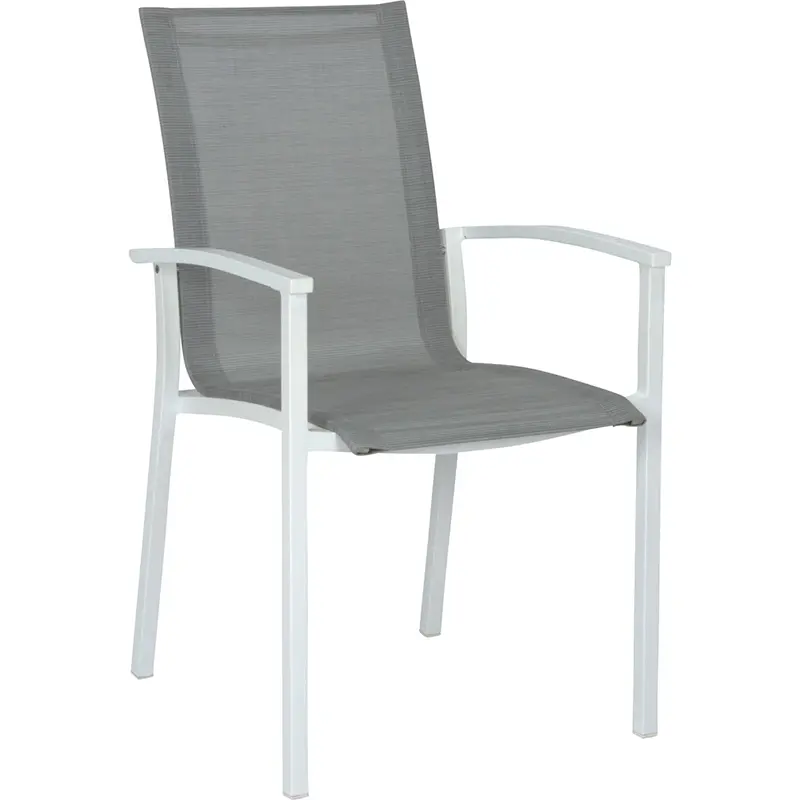 Das Aluminiumgestell ist korrosionsbeständig, witterungsresistent und äußerst leicht (nur 4,2 kg), was einfaches Handling und flexible Bestuhlung ermöglicht. Der Textilenbezug ist formstabil, reißfest, lichtecht und benötigt minimale Pflege – ein großer Vorteil für den professionellen Gastronomieeinsatz.