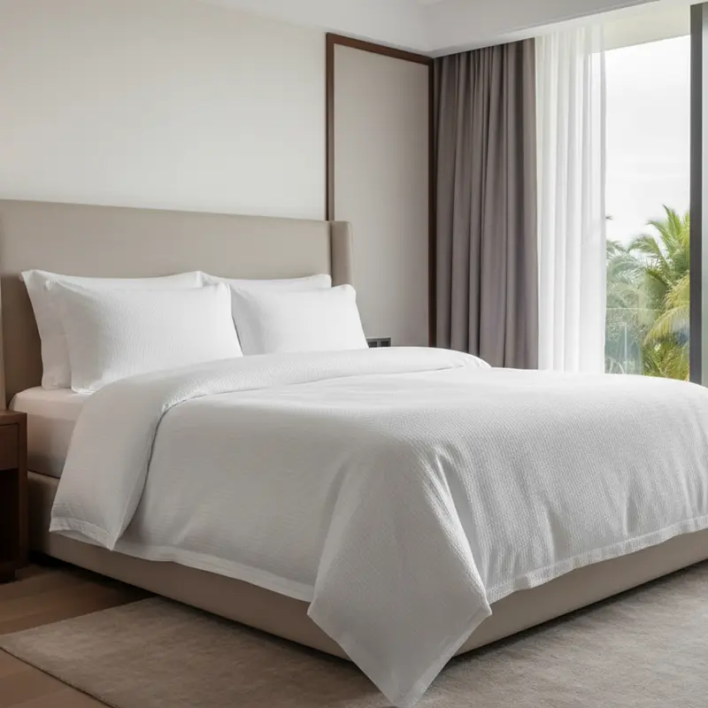 Profitieren Sie von langlebiger Qualität und außergewöhnlich einfacher Handhabung: Die Seersucker Bettwäsche lässt sich schnell wechseln, ist bügelfrei, trocknet rasch und spart so Zeit und Kosten im Housekeeping. Mit dieser Bettwäsche setzen Sie auf einen stilvollen, hochwertigen Look, der Ihre Gäste begeistert und Ihre Betten stets frisch und einladend wirken lässt. Ein Must-have für jedes Hotel, das Wert auf Komfort, Stil und kosteneffiziente Abläufe legt.