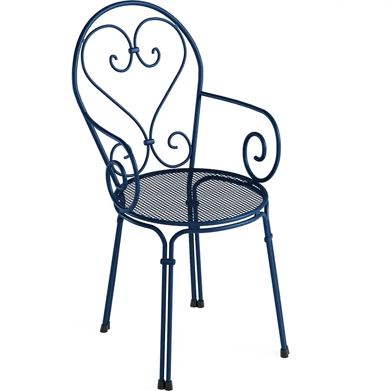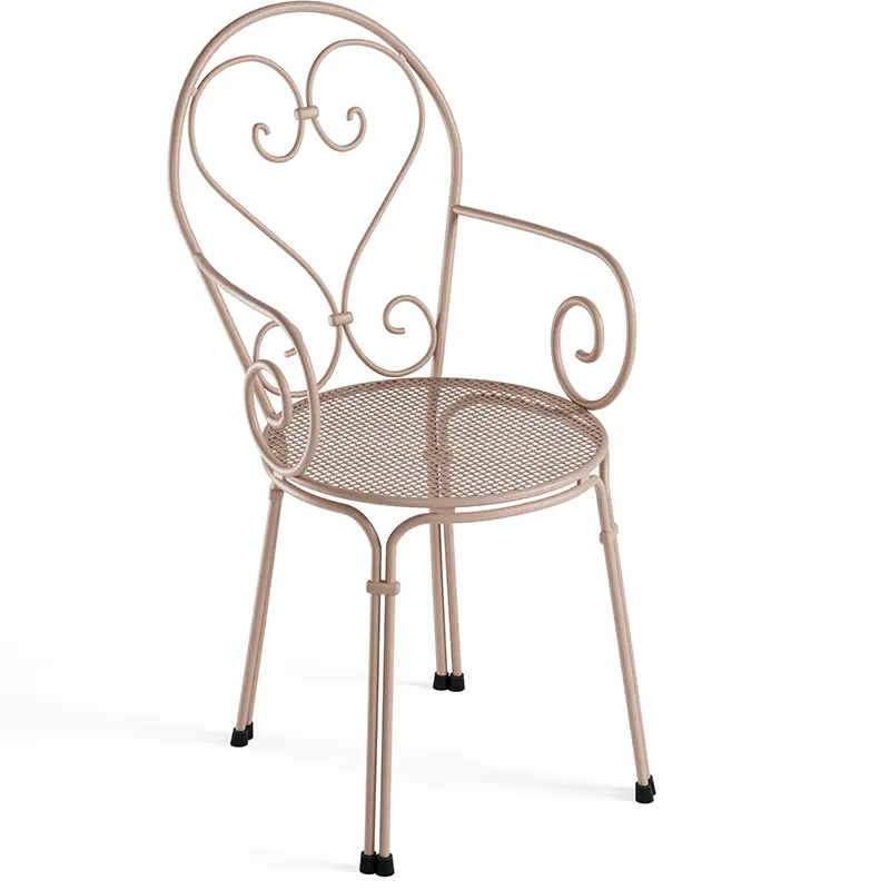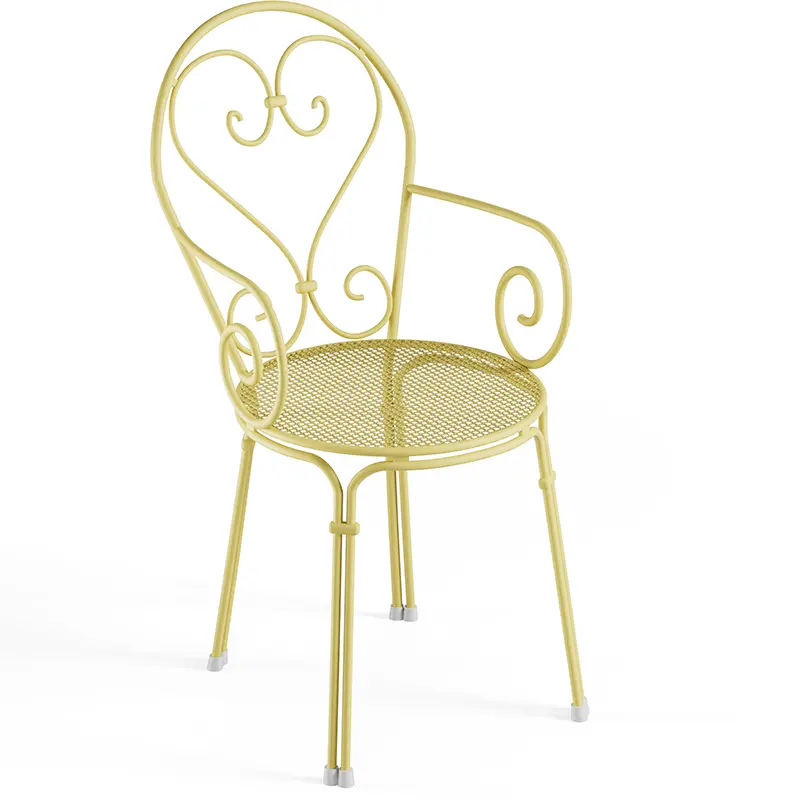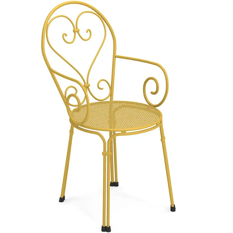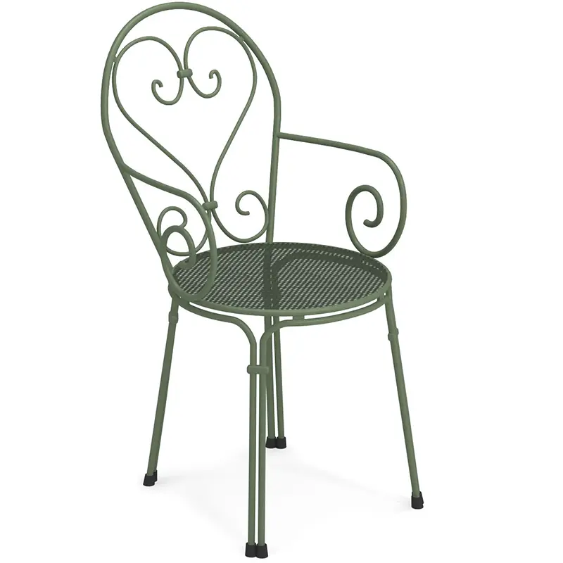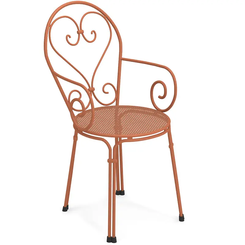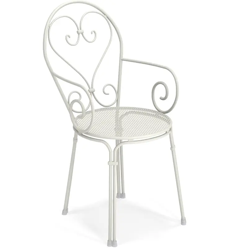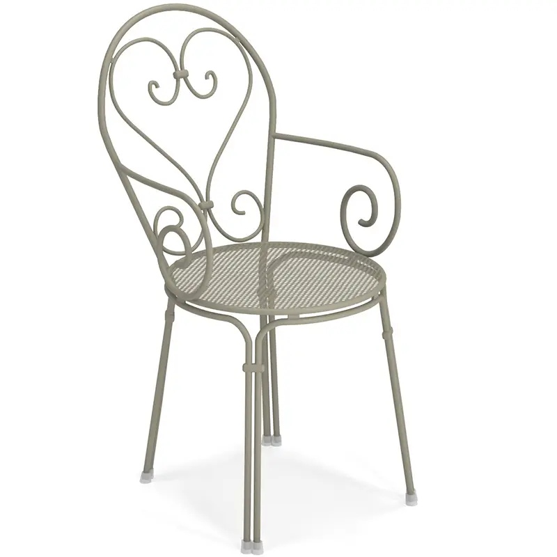 Der Pigalle von EMUEMU ist ein italienischer Hersteller von Outdoor‑Möbeln m... More ist ein klassischer Outdoor‑Armlehnstuhl, der romantische Linienführung mit traditioneller italienischer Metallverarbeitung verbindet. Die kunstvoll geschwungene Silhouette, die dekorative Lochstruktur und die feinen Rundstahl‑Elemente verleihen dem Stuhl eine elegante, zeitlose Ausstrahlung. Die integrierten Armlehnen sorgen für zusätzlichen Komfort und machen den Pigalle zu einer stilvollen und zugleich funktionalen Sitzlösung für den professionellen Einsatz.