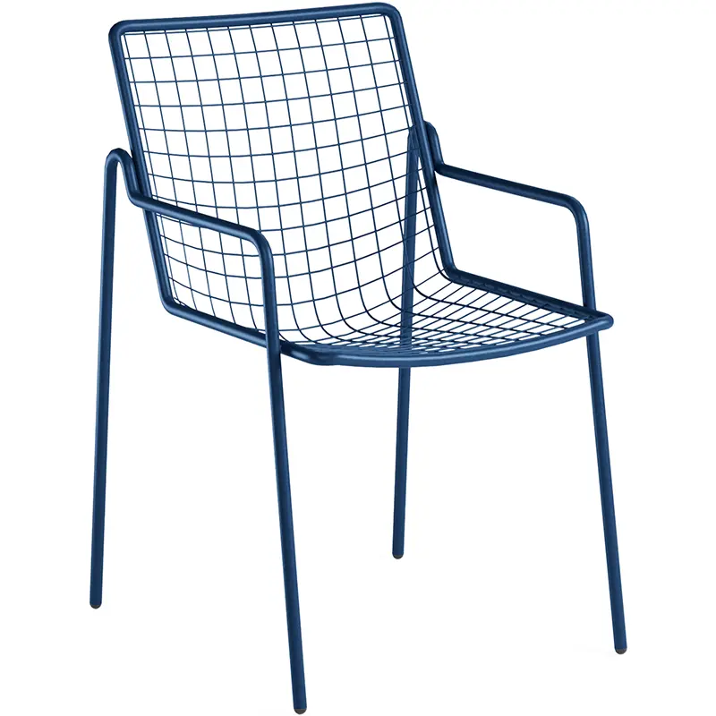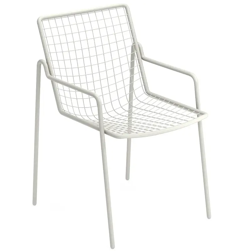 Der Rio R50 von EMUEMU ist ein italienischer Hersteller von Outdoor‑Möbeln m... More ist ein moderner Outdoor‑Armlehnstuhl aus pulverbeschichtetem Stahl, der klare Linien mit einer markanten Rundstahl‑Gitterstruktur verbindet. Die charakteristische Sitz‑ und Rückenfläche aus fein geformtem Rundstahl verleiht dem Stuhl eine grafische, leichte Optik und sorgt gleichzeitig für angenehme Belüftung. Die integrierten Armlehnen bieten zusätzlichen Komfort und machen den Rio R50 zu einer besonders bequemen und langlebigen Sitzlösung für den professionellen Einsatz.